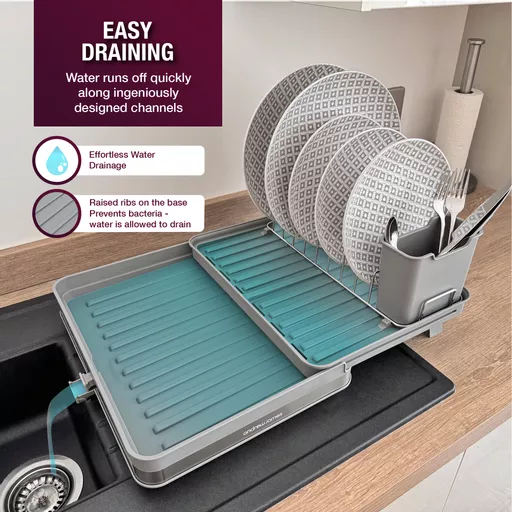 The Andrew James Large Dish Rack in sleek grey is the ultimate solution for modern kitchens. This extendable dish rack combines functionality, style, and space efficiency, making it perfect for small apartments, dorms, or any kitchen needing organized drying. With smart features like a removable cutlery holder and enhanced drainage system, this dish rack streamlines your dish-drying experience while keeping your countertop clean and clutter-free.