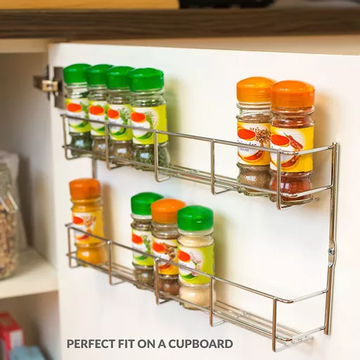 Chrome plated 2 tier spice rackOpen front design makes it easy for you to read the labels