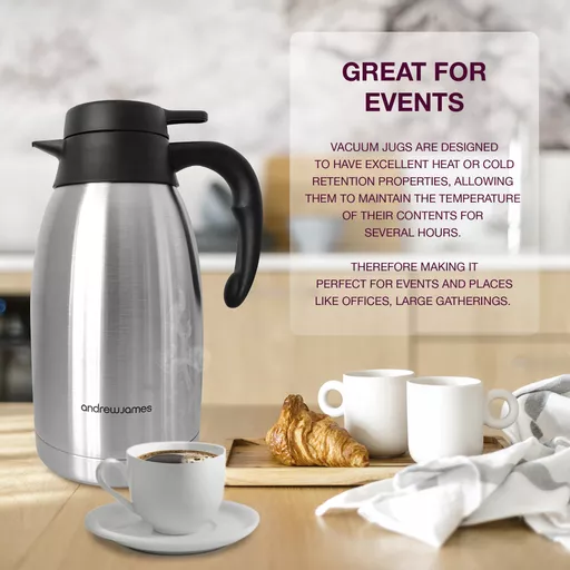 The Andrew James Thermal Carafe Vacuum Jug is perfect for keeping your drinks hot or cold, it has the ability to keep drinks warm for up to 12 hours which is perfect for your tea and coffee, along with that you can also use it to keep and serve smooth soups.